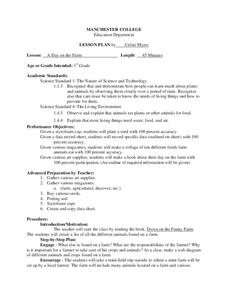 First graders, with a collection of various art supplies, plant a seed to observe it growing and record specific data on a data record sheet. They create a collage from various magazines of ten different foods farm animals eat and make a...