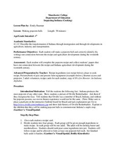 Fourth graders explore Indiana. In this Indiana history lesson, 4th graders discuss how Indiana has developed through the years. Students discuss Indiana agriculture and follow a recipe using ingredients from Indiana crops. Students view...