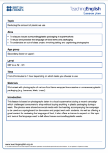 Paper or plastic? Scholars discuss a worksheet containing grocery photos in which consumers were challenged to buy items without plastic wrapping or containers. Learners rank the food items by the need for packaging, such as a banana,...