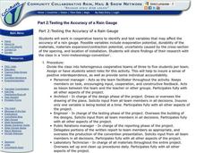 Students identify and test variables that may affect the accuracy of a rain gauge.