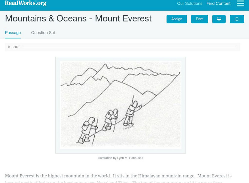 [Free Registration/Login Required] An informational text about Mount Everest. A question sheet is available to help students build skills in reading comprehension.