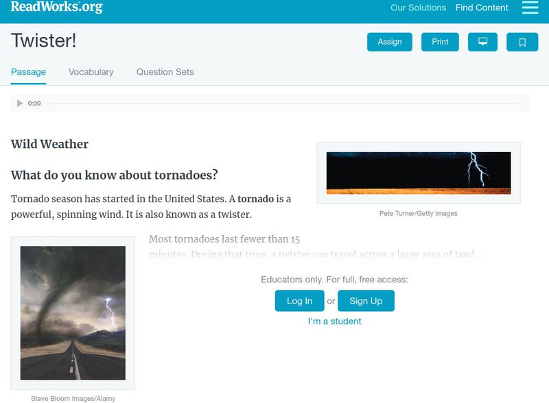 [Free Registration/Login Required] An informational text about tornadoes. A question sheet is available to help students build skills in reading comprehension.