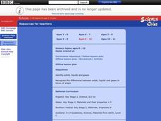 Learners participate in a whole class discussion about solids, liquids, and gases. Students get involved in a teacher-directed experiment related to solids, liquids, and gases. Learners complete worksheet, writing the names of the parts...