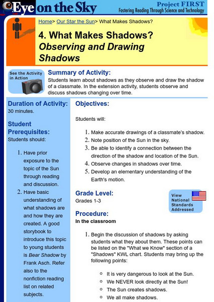Center for Science Education: Eye on the Sky: What Makes Shadows?