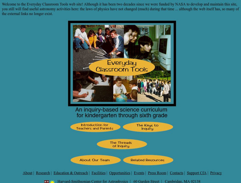 The focus of this series of lessons is to engage students in an exploration of the world around them. The emphasis is on inquiry as students learn about the earth, sun, light, shapes and more.