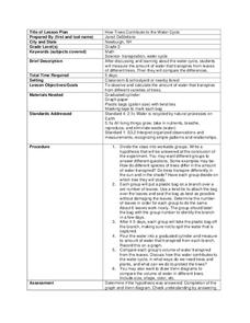 In this water cycle instructional activity, 3rd graders conduct an experiment where they observe and calculate how water transpires in different types of trees. Students engage in a class discussion and use Venn Diagrams to compare...