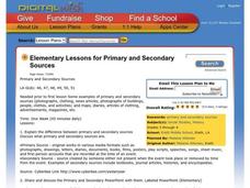 Explore primary and secondary sources in this historical analysis lesson. Young researchers define the terms primary source and secondary source. They read a primary source document provided by the teacher and answer questions about...