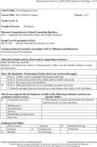 Changes in the family such as a new baby, divorce, a new job, or death are the focus of a instructional activity that examines how every family is different. Scholars draw a picture of their family then share the changes that have...