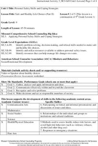 Sophomores can be sometimes wise and sometimes foolish. The same can be said for their behaviors. After watching a presentation about risk taking behaviors, class members discuss the presentation in small groups, and then complete a...