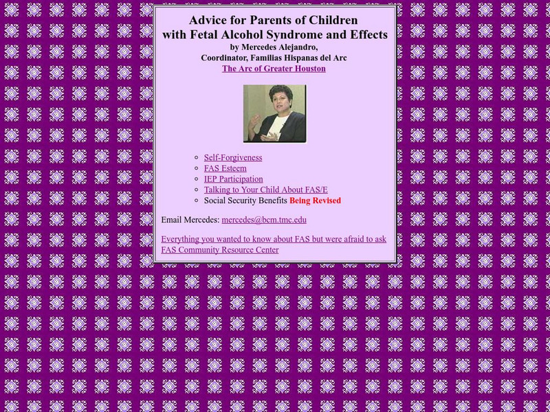 This website offers advice for parents of children with fetal alcohol syndrome and is organized into the following sections: "Self-Forgiveness," "FAS Esteem," "IEP Participation," and "Talking to Your Children About FAS/E." Here, parents...