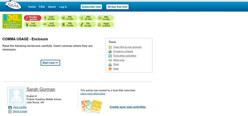 Students will be challenged when they take this interactive grammar quiz? This quiz asks students to identify whether or not the sentence is grammatically correct. Come and check it out.