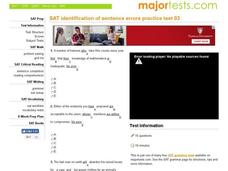 In this identification of sentence errors instructional activity, learners choose the answer that best corrects the errors in each sentence. Students have 10 minutes to complete 15 questions in this SAT practice instructional...