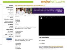 In this sentence completion worksheet, students choose the answer that best completes each sentence. Students have 10 minutes to answer 12 questions in this SAT practice worksheet.