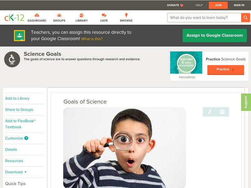[Free Registration/Login may be required to access all resource tools.] Introduction to the goals of science.