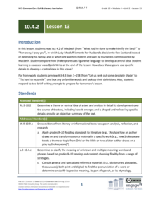 Students complete play and vocabulary analysis for William Shakespeare's Macbeth. In this Macbeth analysis instructional activity, students use an online research engine to locate passages that highlight Macbeth's response to fear and...