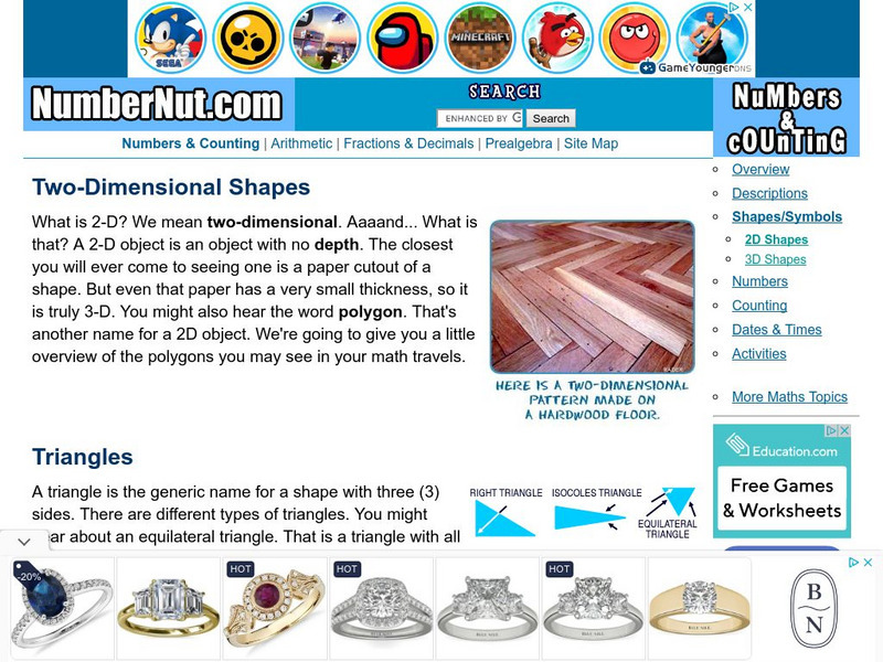 Did you know that two-dimensional shapes are also called polygons? This lesson describes the various 2-D shapes and includes two interactive games to reinforce skills.