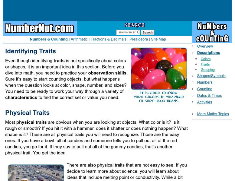 Investigate the relationship between shapes and identifying traits or characteristics. A concise lesson that explores physical, chemical, and observable traits in the shapes around us. Build on this knowledge by playing the Web Colors...