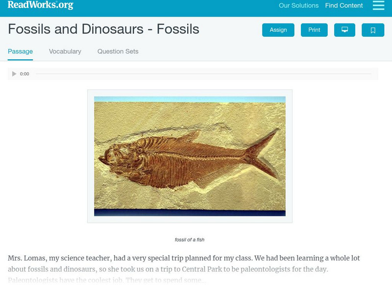 [Free Registration/Login Required] This text describes a field trip to Central Park. Information is shared about fossils and the work of archaeologists. This passage is a stand-alone curricular piece that reinforces essential reading...