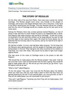 The great Roman general, Regulus, was known for keeping his word. Read about the extent of his honesty in a reading passage about his imprisonment in Carthage, and assess reading skills with four comprehension questions.
