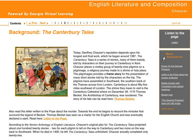 Ga Virtual Learning: Chaucer: Background: The Canterbury Tales