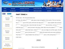 In this online grammar worksheet, students read the sentences in present tense followed by sentences in past tense in which the verb is omitted. Students write the verb in the past tense to complete 14 exercises.