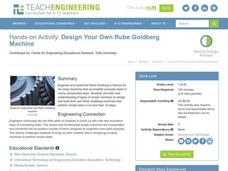 Students design and construct a Rube Goldberg machine that accomplishes a simple task in at least ten steps. They view and discuss various Rube Goldberg designs, identify types of simple machines, and in small groups produce a schematic...