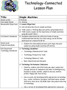 Students list and describe the six simple machines. They create a Thinking Map and outline using Kidspiration and create a paper on the importance of simple machines using Microsoft Word.