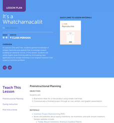 Learners formulate new applications for simple machines in an original invention that solves a common problem. They brainstorm ideas for a new product using simple machines and communicate a finished project through an oral,...