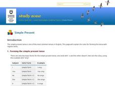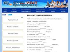 The present tense is a helpful skill to review in any language arts classroom. Focusing on statements made in the affirmative and in the negative, a slideshow presentation guides pupils through grammar rules and examples for the simple...