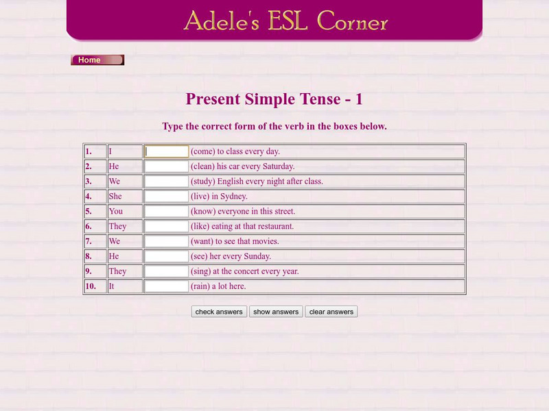 Present simple, explained, with examples and exercises. Clear and easy to follow. ESL students could work on this site alone. Some guidance in Spanish.