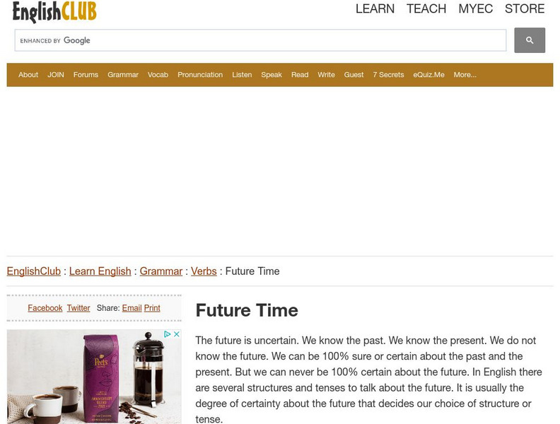 An explanation of future time with links to addition information on present continuous, present simple, future time, and more.