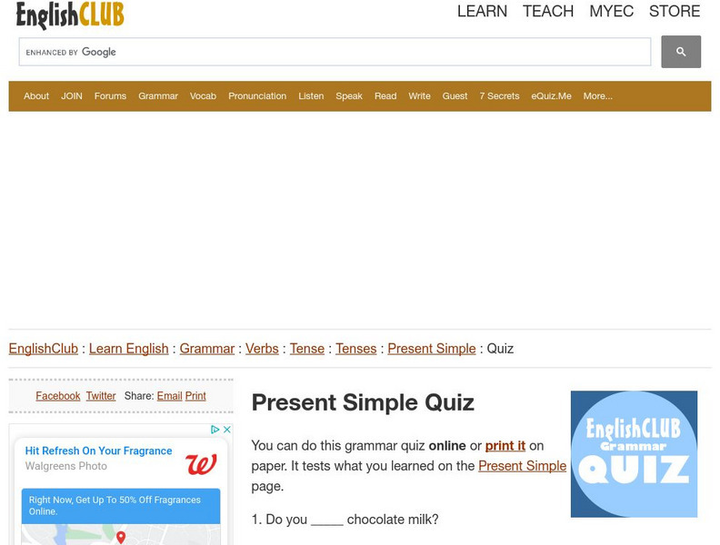 English Club: Learn English: Grammar: Grammar Quizzes: Present Simple Quiz