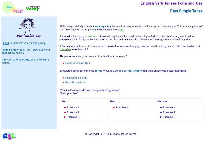 The English past simple is presented clearly, with examples and exercises. ESL students could use this site on their own. Some guidance in Spanish.