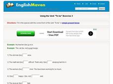 In this using the verb "to be" instructional activity, students complete each sentence by using the correct form of the verb "to be" in the simple present tense. Students complete 7 sentences.