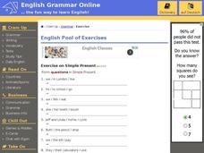 In this verb tense interactive worksheet, students use the correct form of the verb in parenthesis at the end of each sentence. They use either the simple present or simple past form of each verb in 20 sentences. They submit their answer...