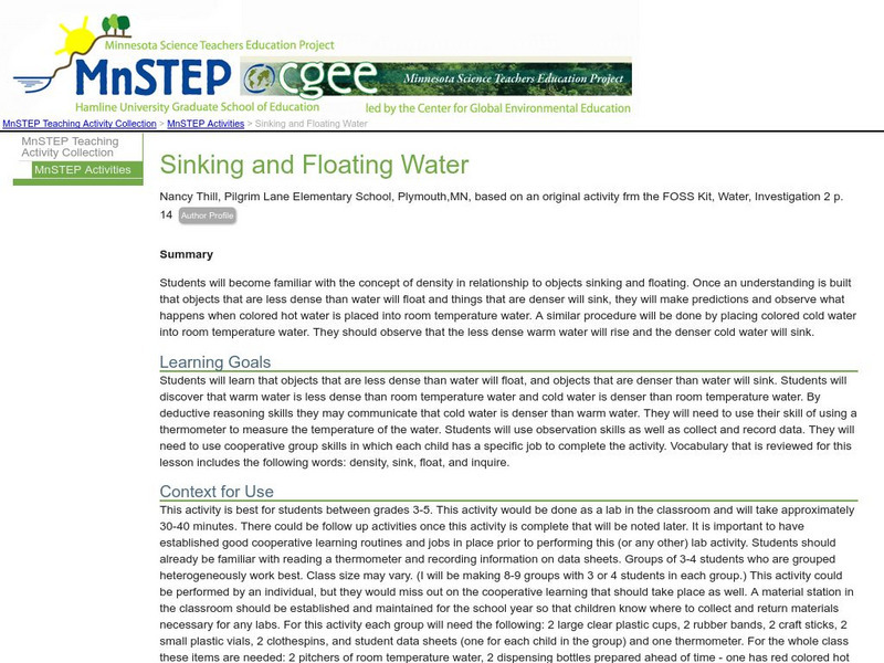 Serc: Mn Step: Sinking and Floating Water