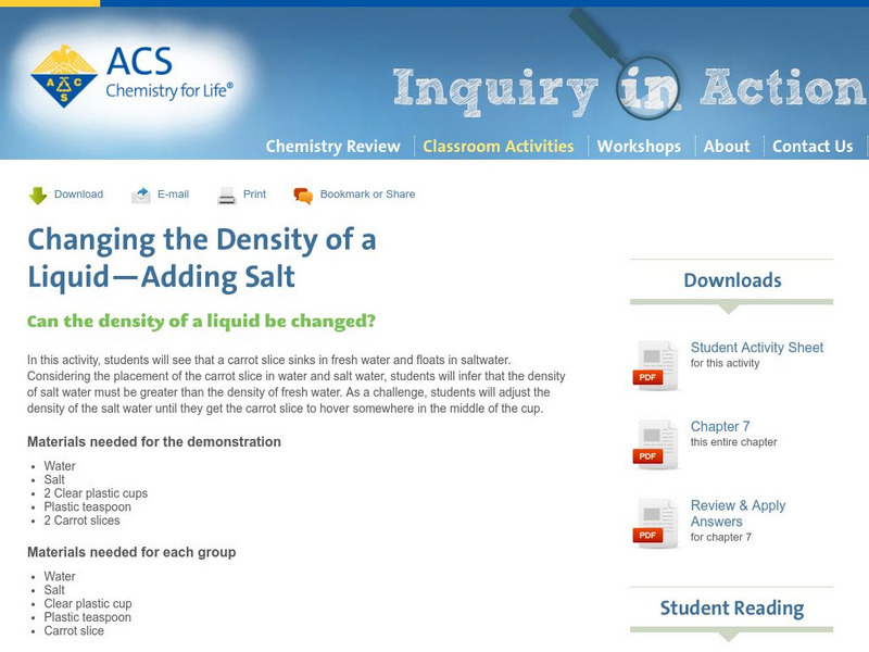Inquiry in Action: Changing the Density of a Liquid: Adding Salt