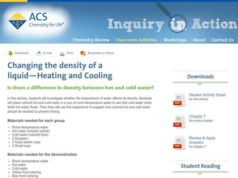 Inquiry in Action: Changing the Density of a Liquid: Heating and Cooling