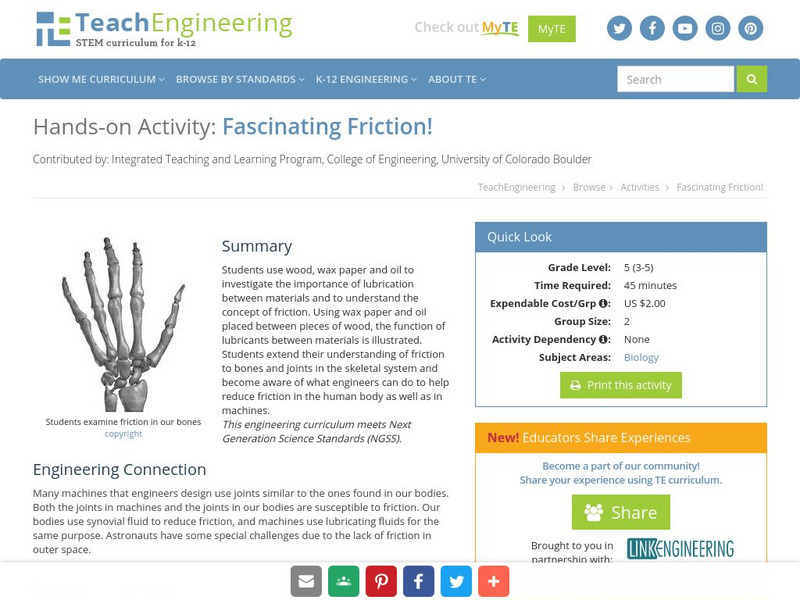 In this activity, students use wood, wax paper and oil to investigate the importance of lubrication between materials and to understand the concept of friction. Using wax paper and oil placed between pieces of wood, the function of...