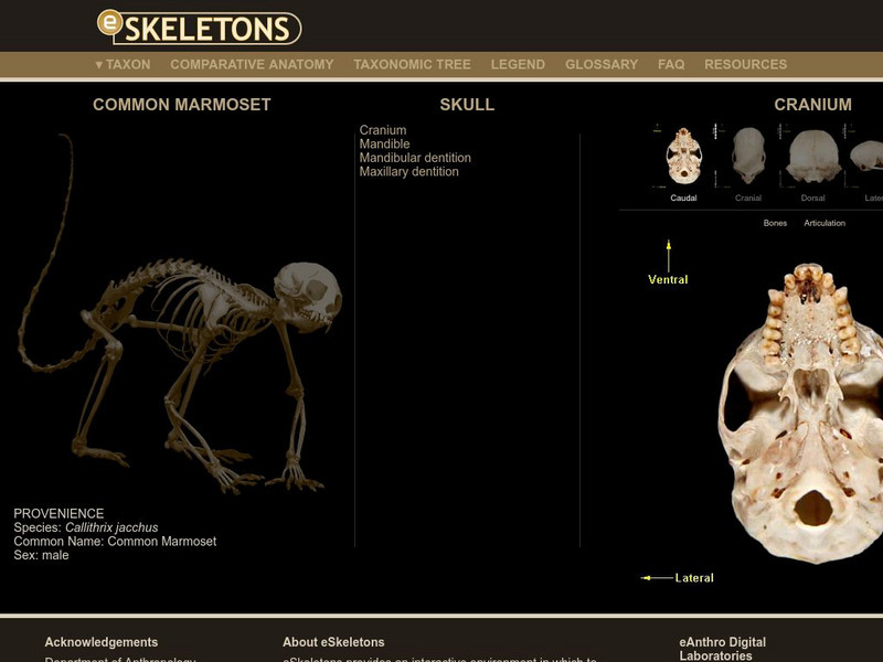 Detailed images of the skull and cranium of the Common Marmoset can be found.