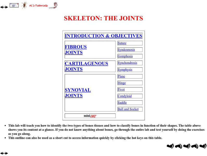 This is an extremely in depth look at the various different joints and their range of motion. Labeled diagrams are provided for each type. Illustrated quizes and x-rays can be accessed for each joint classification.