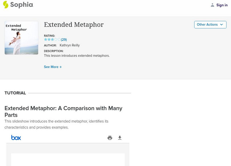 This slideshow focuses on the extended metaphor including defining it, stating its purpose, showing the difference between a metaphor and an extended metaphor, and providing a literary example -- Shakespeare's "As You Like It"-- with...