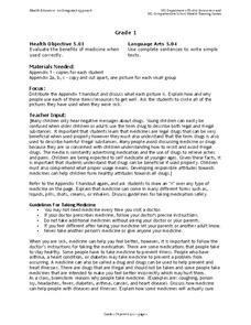 First graders determine the difference between good and bad drugs. In this lesson plan about drug awareness, 1st graders explore differences between drugs. Students will look at picture and understand what uses there are for drugs....