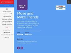 Students participate in games to make new friends. They "dance and freeze" as music plays. Students skip, hop and wiggle as they play a moving down the line game. Students develop gross motor skills, listening, and social awareness...