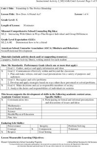 Get creative as you teach a lesson plan on positive peer and social interactions. Discuss good social interactions through a scenario, brainstorm a positive response to the scenario, then creat a comic book superhero that exemplifies the...