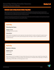 Two activities look at how rumors are spread and ways class members can stop them. The first activity brings forth an in-depth conversation about how reporters gather information to write articles and how students can implement the same...