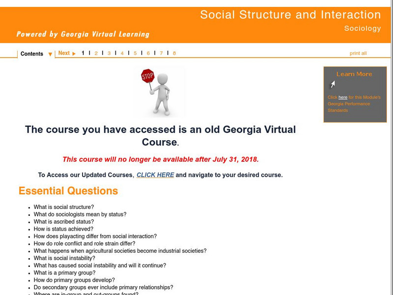 Ga Virtual Learning: Sociology: Social Structure and Interaction