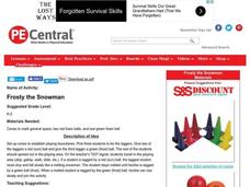 Students travel in the playing area (skip, gallop, walk, slide, etc.). If a student is tagged by a red (sun) ball, the tagged student must stop and fall slowly like a melting snowman. They stays melted until he/she is tagged by a green...