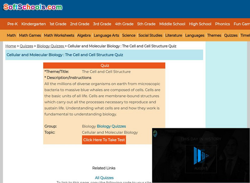 Soft Schools: Cellular and Molecular Biology : The Cell and Cell Structure Quiz