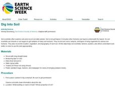 Students discuss what is found in soil. In this science lesson, students observe the soil outside and write down information in regards to location, vegetation, and topography. Students experiment with the soil and its many properties...